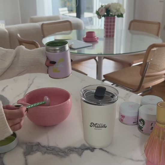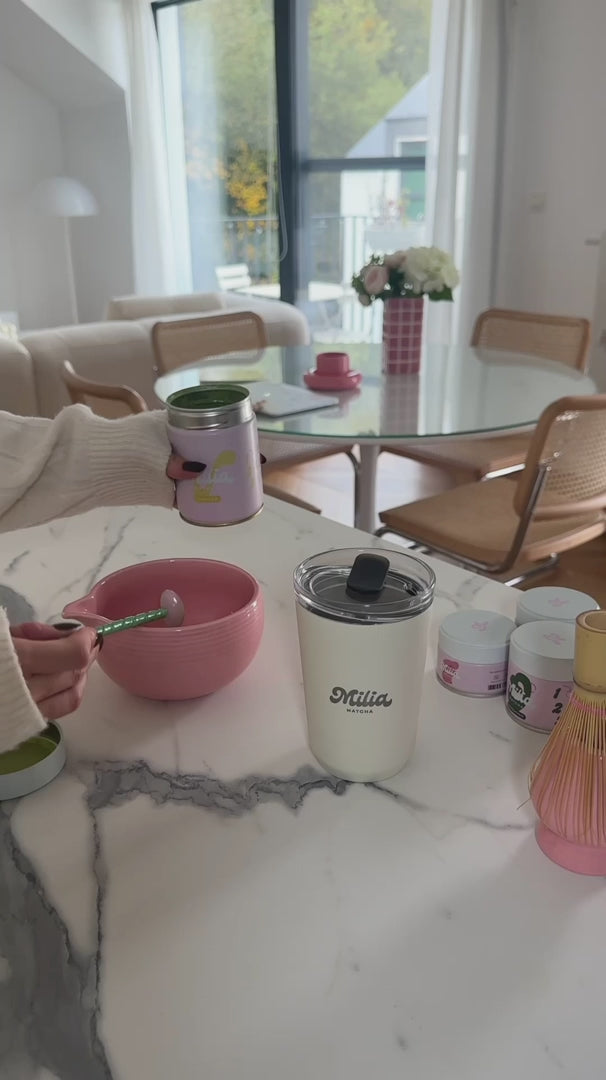 Notre Cup Matcha To Go, imaginé et designé au Japon, est le compagnon idéal pour tous les moments de la vie quotidienne: à la maison, au bureau, en voiture, il vous permet de savourer votre matcha où que vous soyez ! Grâce à ses doubles parois en acier inoxydable, il empêche le transfert de la chaleur tout en gardant votre boisson chaude ou froide pendant plusieurs heures. Étudié pour être utilisé avec ou sans son couvercle, il peut également servir de mug au quotidien. Issu d'une collaboration avec la célèbre société japonaise Kinto, chaque Matcha To Go est gravé du logo Alora Matcha© dans un atelier parisien et livré dans sa boîte personnalisée. Contenance : 360ml.